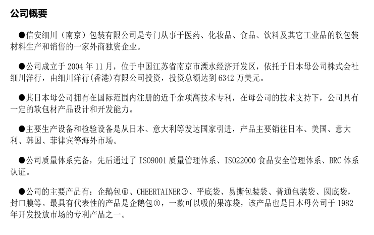 信安細(xì)川(南京)包裝有限公司