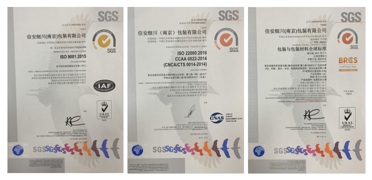 ●公司質(zhì)量體系完備,先后通過了ISO9001質(zhì)量管理體系、ISO22000食品安全管理體系、BRC體系認(rèn)證。