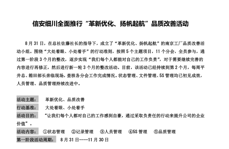 信安細(xì)川全面推行“革新優(yōu)化、揚(yáng)帆起航”質(zhì)量改善活動(dòng)